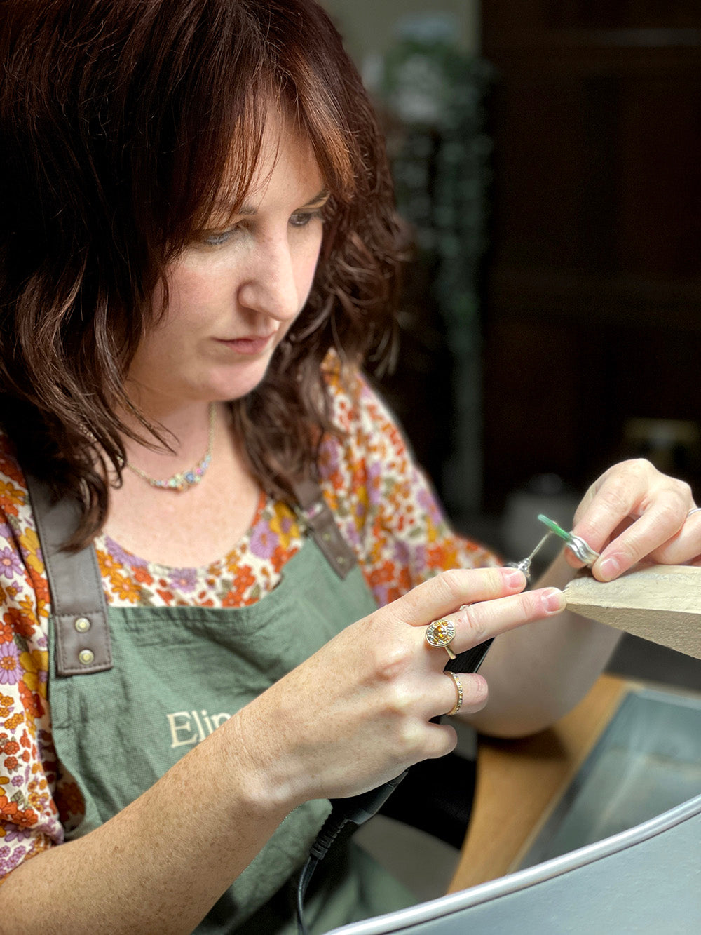 " Ellie is without a doubt the best jeweller someone could ask for. Her knowledge of designing, stones and metals is amazing, she works with your ideas (even with my poor explaining) to create exactly what you're after ..... if you're looking for a jeweller she is the one, especially to make you something bespoke ! Ellie will make your jewellery journey special and include you as much as she can/you want."