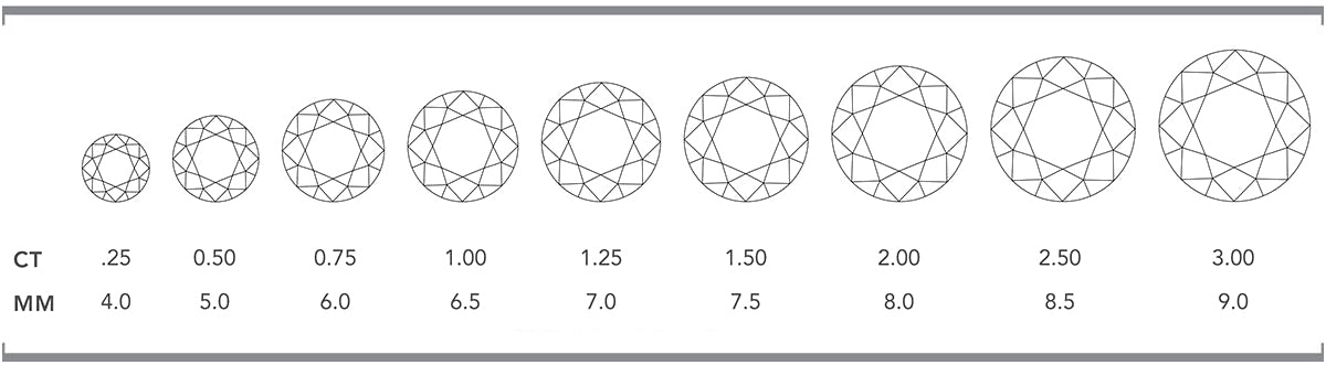 For diamonds under one carat, each carat is divided into 100 points. E.g. 0.75ct = 75 points and ¼ ct = 25 points.