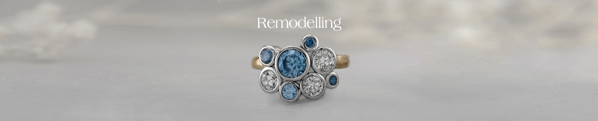 Remodelling jewellery is a fantastic way to retain the sentimental value of jewellery, whilst making a truly personal design and a new family heirloom. You can be involved in every step of the design to make sure it's exactly as you'd like, choosing the design and which metals and gemstones are used. You can also customise any of the designs seen in the jewellery galleries to suit you.